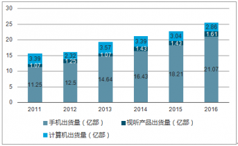 2011-2016年中國 3C 制造業(yè)出貨量對(duì)比