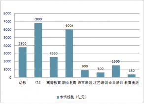 教育各細(xì)分領(lǐng)域市場(chǎng)規(guī)模(億元)