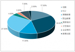 教育各細(xì)分領(lǐng)域市場(chǎng)規(guī)模占比