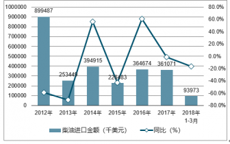 2012-2019年中國柴油進口金額統(tǒng)計圖