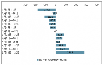 2019年中國柴油(0#國Ⅴ)價格漲跌值走勢圖