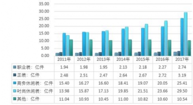 2011-2017年我國(guó)男裝行業(yè)需求結(jié)構(gòu) |