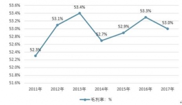 2011-2017中國獸用疫苗市場平均毛利率 |