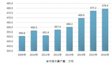 2009-2016年中國木薯行業(yè)產(chǎn)量情況