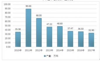 2010-2017年中國木薯淀粉產(chǎn)量情況