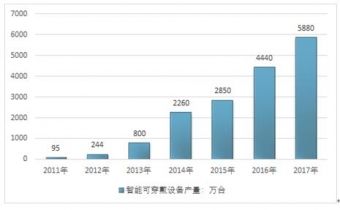 2011-2017年中國智能可穿戴設(shè)備行業(yè)產(chǎn)量情況