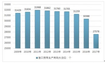 2009-2017年中國港口擁有生產(chǎn)用碼頭泊位數(shù)量