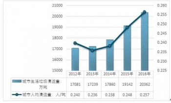 2012-2016年我國(guó)城市垃圾清運(yùn)量及人均垃圾清運(yùn)量分析