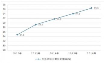 2012-2016我國(guó)城市生活垃圾無(wú)害化處理率分析