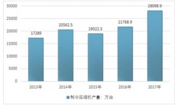 2013-2017年中國制冷壓縮機(jī)行業(yè)產(chǎn)量統(tǒng)計(jì)