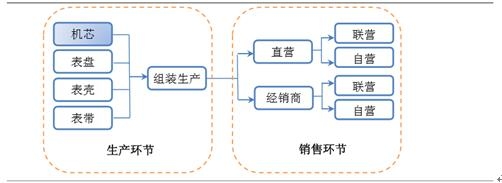 鐘表產(chǎn)業(yè)鏈主要是包括生產(chǎn)和銷售兩大環(huán)節(jié)。仍目前鐘表的世界格局來(lái)看,上游生產(chǎn)環(huán)節(jié)掌握品牌、技術(shù) 、工藝等核心要素,附加值最高。下游銷售環(huán)節(jié)話語(yǔ)權(quán)較弱, 附加值低。從趨勢(shì)上看,上下游在融合:上游鐘表品牌商在逐漸加強(qiáng)對(duì)渠道的控制,而渠道商也在逐漸向上游滲透。
