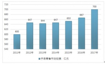 2011-2017年中國(guó)手表行業(yè)銷售規(guī)模