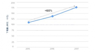 2015-2017年全球App下載總量走勢圖