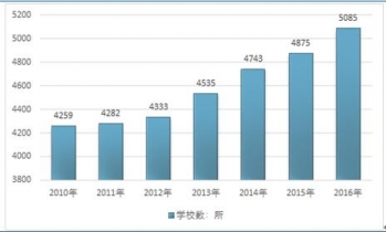 2010-2016年我國私立中學(xué)數(shù)量走勢(shì) |