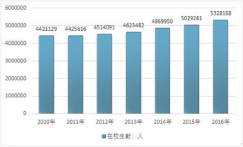 2010-2016年我國私立中學(xué)在校學(xué)生人數(shù)走勢(shì) |