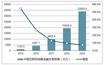圖表:2014-2019年中國互聯(lián)網(wǎng)互聯(lián)網(wǎng)消費金融交易規(guī)模及增長率(單位:億元,%)