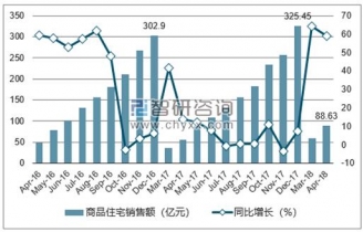 2019年1-4月烏魯木齊市商品住宅銷售額為88.63億元,同比增長59%;2017年1-12月烏魯木齊市商品住宅銷售額為325.45億元,同比增長7.4%。