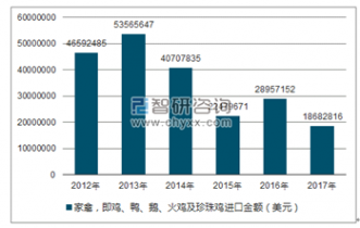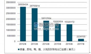 海關(guān)數(shù)據(jù)顯示:2019年我國家禽,即雞、鴨、鵝、火雞及珍珠雞進口金額為28957152美元,2018年我國家禽,即雞、鴨、鵝、火雞及珍珠雞進口金額為18682816美元。