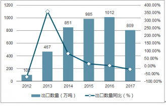 2012-2019年中國焦炭及半焦炭出口數(shù)量統(tǒng)計圖