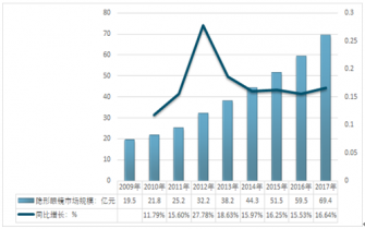 2009-2019年我國隱形眼鏡市場規(guī)模及增長走勢圖 |