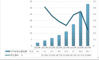 2010-2017年中國(guó)VOC檢測(cè)儀器行業(yè)市場(chǎng)規(guī)模及增速 |
