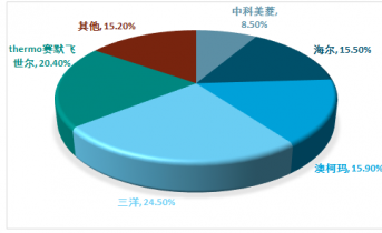目前,國(guó)內(nèi)超低溫冰箱行業(yè)中科美菱、三洋、海爾、澳柯瑪?shù)绕髽I(yè)。2017年國(guó)內(nèi)品牌超低溫冰箱占據(jù)超過50%的份額。