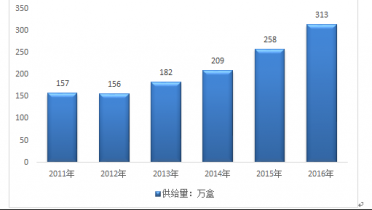 食品安全快速檢測試劑行業(yè)是資金、技術(shù)密集型的行業(yè),要求企業(yè)不但要有較雄厚的資金實(shí)力,而且要有較高的研發(fā)能力。由于市場上形成商品的試劑不多,所以產(chǎn)品一旦上市,獲得市場回報(bào)的速度較快,能在較短的時(shí)間內(nèi)回籠資金。2016年,我國食品安全快速檢測試劑市場的供給量為313萬盒,相比2015年增長了21.3%。