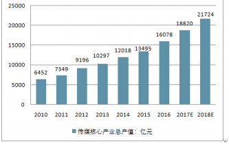 2006-2017E年我國傳媒產(chǎn)業(yè)總產(chǎn)值及預(yù)測