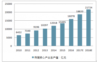 2006-2017E年我國(guó)傳媒產(chǎn)業(yè)總產(chǎn)值及預(yù)測(cè)