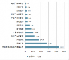 2019年中國(guó)傳媒產(chǎn)業(yè)細(xì)分行業(yè)總體收入(單位:億元)