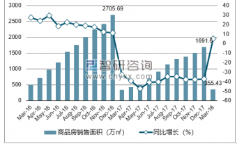 2019年1-3月上海市商品房銷售面積為355.43萬(wàn)㎡,同比增長(zhǎng)5.2%;2017年1-12月上海市商品房銷售面積為1691.6萬(wàn)㎡,同比下降37.5%。