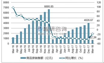 2019年1-3月上海市商品房銷售額為707.56億元,同比下降17.6%;2017年1-12月上海市商品房銷售額為4026.67億元,同比下降39.9%。