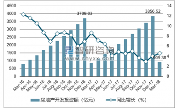 2019年1-3月上海市房地產(chǎn)開發(fā)投資額為909.38億元,同比增長(zhǎng)4.6%;2017年1-12月上海市房地產(chǎn)開發(fā)投資額為3856.52億元,同比增長(zhǎng)4%。