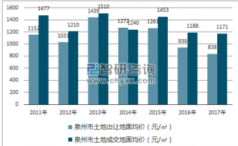 2011-2017年泉州市土地市場(chǎng)出讓地面均價(jià)及成交地面均價(jià)