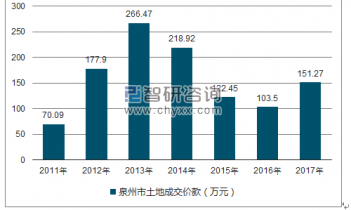 2011-2017年中國(guó)泉州市土地市場(chǎng)成交價(jià)款