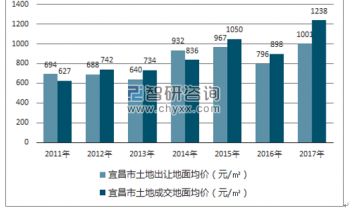 2017年宜昌市土地市場出讓地面均價為1001元/㎡,成交地面均價為1238元/㎡;2016年宜昌市土地市場出讓地面均價796元/㎡,成交地面均價為898元/㎡。