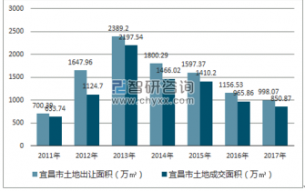 2017年宜昌市土地市場出讓面積為998.07萬㎡,成交面積為850.87萬㎡,未成交面積為138.02萬㎡;2016年宜昌市土地市場出讓面積為1156.53萬㎡,成交面積為965.86萬㎡,未成交面積為144.08萬㎡。
