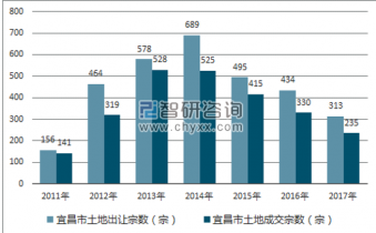 2017年宜昌市土地市場出讓宗數(shù)及成交宗數(shù)