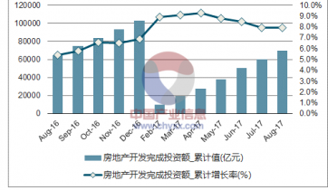 數(shù)據(jù)顯示:2017年1-8月份中國(guó)房地產(chǎn)開發(fā)完成投資額69494.00億元,同比增長(zhǎng)7.90%;2016年1-12月份中國(guó)房地產(chǎn)開發(fā)完成投資額102580.61億元,同比增長(zhǎng)6.90%。