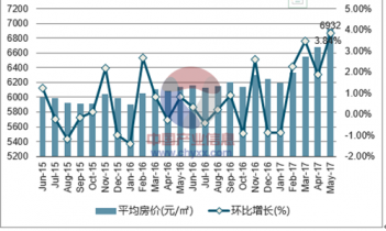 2017年5月邯鄲市房地產平均價格為6932元/㎡,環(huán)比增長3.84%,同比增長12.9%。