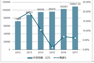 2012-2017年房地產行業(yè)市場規(guī)模及增速