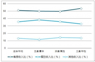 2019年2月,全國星級(jí)酒店平均出租率為58.24%,比上月提高8.13%。平均房價(jià)為354.73元,每間可供房收入為207.56元;客房收入占比51.13%,餐飲收入占比35.59%。2019年3月份三星及以上星級(jí)飯店的客房平均入住率為58.24%,其中四星級(jí)飯店的入住率最高達(dá)59.23%,五星級(jí)酒店平均入住率為58.95%,三星級(jí)酒店入住率達(dá)56.54%。3月份平均房價(jià)354.73元,五星級(jí)與四星級(jí)的房價(jià)平均相差150.7元。