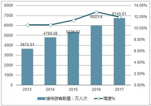2017年旅游人數(shù)和旅游收入均超額完成任務,海南旅游收入大幅增長得益于海南游客數(shù)量增長。早在2013年海南接待游客3672.51萬人次,并且以每年10%左右的速度增長。2015年海南接待游客數(shù)量突破5000萬人次,并且增速不斷提高。2017年海南接待旅客6745.01萬人次,同比增長12%。