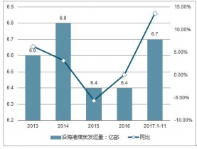 2013-2017我國沿海港口煤炭發(fā)運量(億噸)
