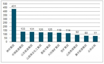 全球煤炭產(chǎn)量前10企業(yè)中中國占據(jù)8席(百萬噸)