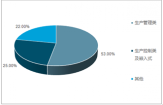 自2011年以來,全球工業(yè)軟件市場(chǎng)規(guī)模以每年6%左右的速度增長(zhǎng)。工業(yè)軟件構(gòu)成中主要以業(yè)務(wù)管理為類主,占比超過50%,生產(chǎn)調(diào)度及過程控制類和研發(fā)設(shè)計(jì)類各占約25%。