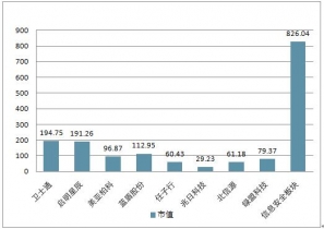 信息安全板塊重點公司市值表現(xiàn)(億,%)