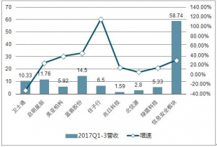 信息安全板塊重點公司營收及增速表現(xiàn)(億,%)