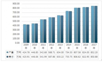 2009-2017年我國紅棗產(chǎn)銷量統(tǒng)計圖