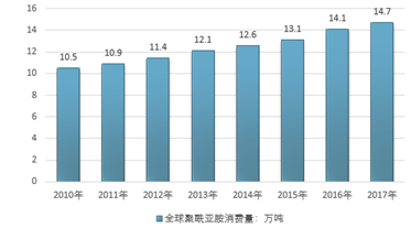 2010-2017年全球聚酰亞胺消費量 |